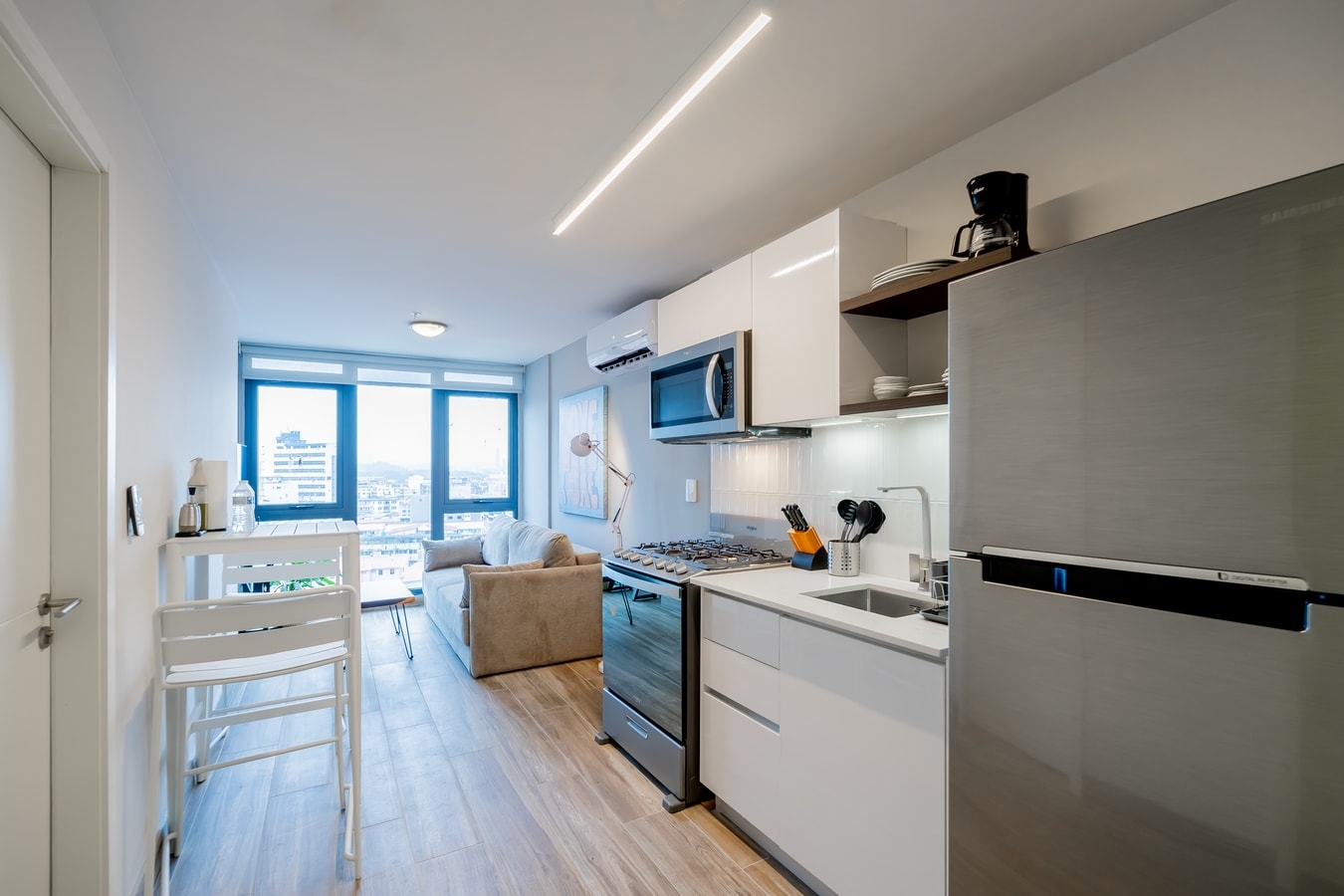 Experience Panama City from Casco View Life, a collection of boutique serviced apartments located in Santa Ana, the Creative District and vibrant extension of Casco Viejo, a UNESCO World Heritage Site. Enjoy modern, fully equipped apartments with full kitchens, in-unit laundry, fast WiFi, and premium design. With a saltwater pool, coworking lounge, garden terrace, Concierge service, and 24/7 security, this is the perfect space for short or extended stays.