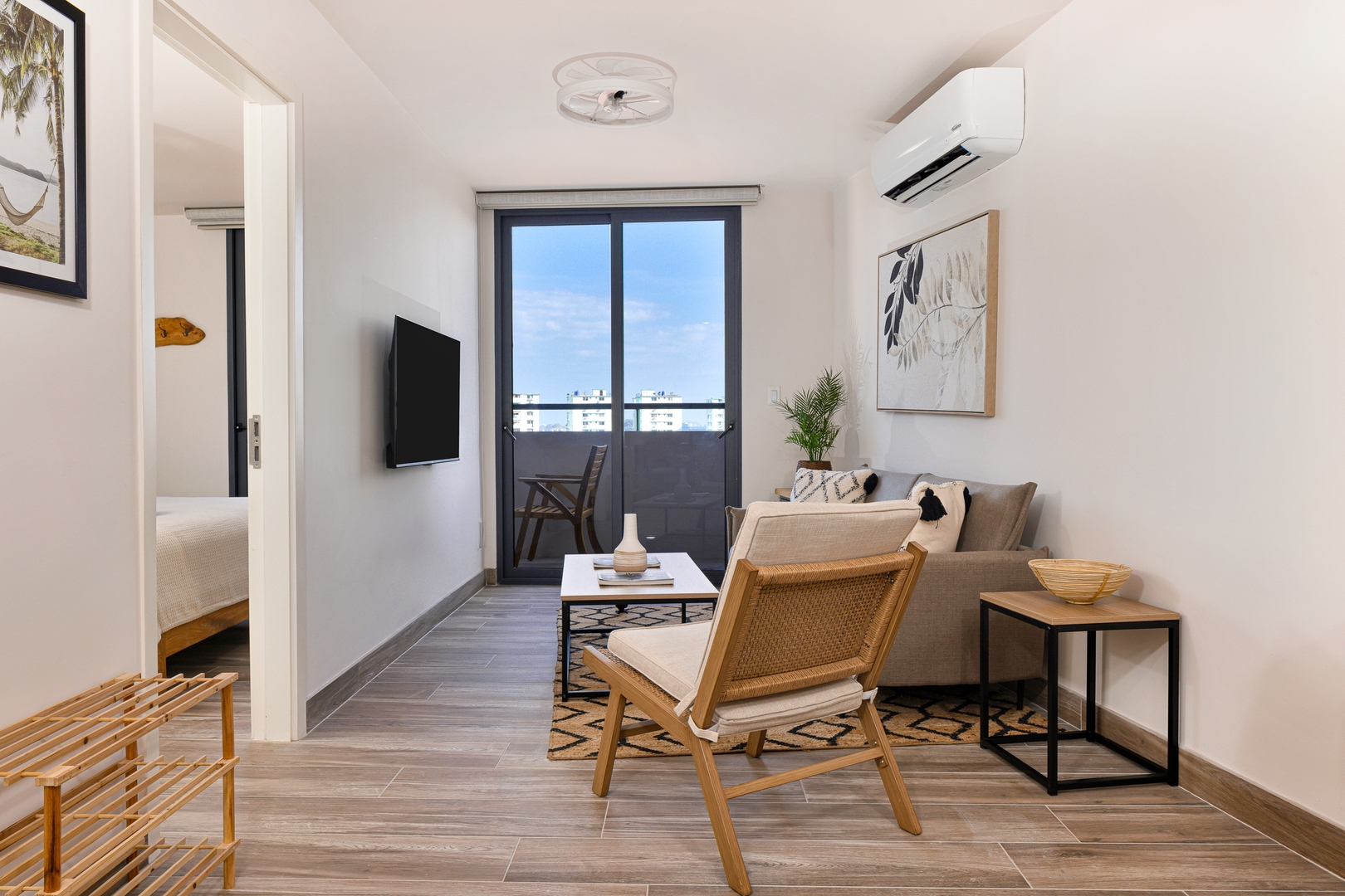 Our meticulously designed 57 m² (613 ft²) apartment invites you to unwind in elegance. With expansive floor-to-ceiling windows and private balconies, you’ll be captivated by panoramic views of the historic old city, the breathtaking Pacific Ocean, and the vibrant modern skyline. Inside, discover top-tier finishes, including bespoke live-edge wood tables, luxurious hospitality Euro-top mattresses, and striking local photography that embodies the spirit of Panama.