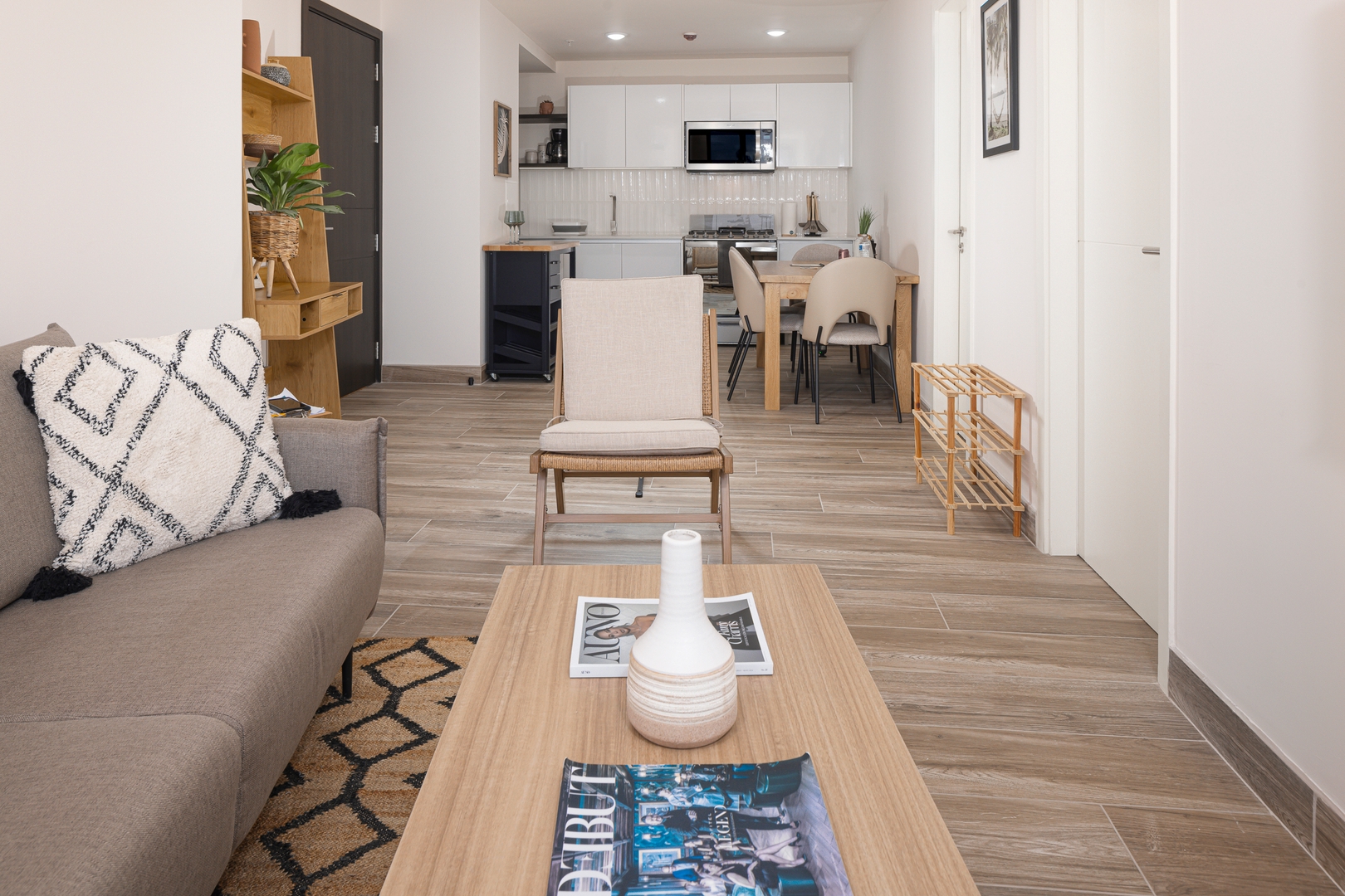 As our guest, you'll enjoy exclusive access to the 6th floor social area, which features a co-working lounge, a saltwater pool, and a beautiful garden terrace.