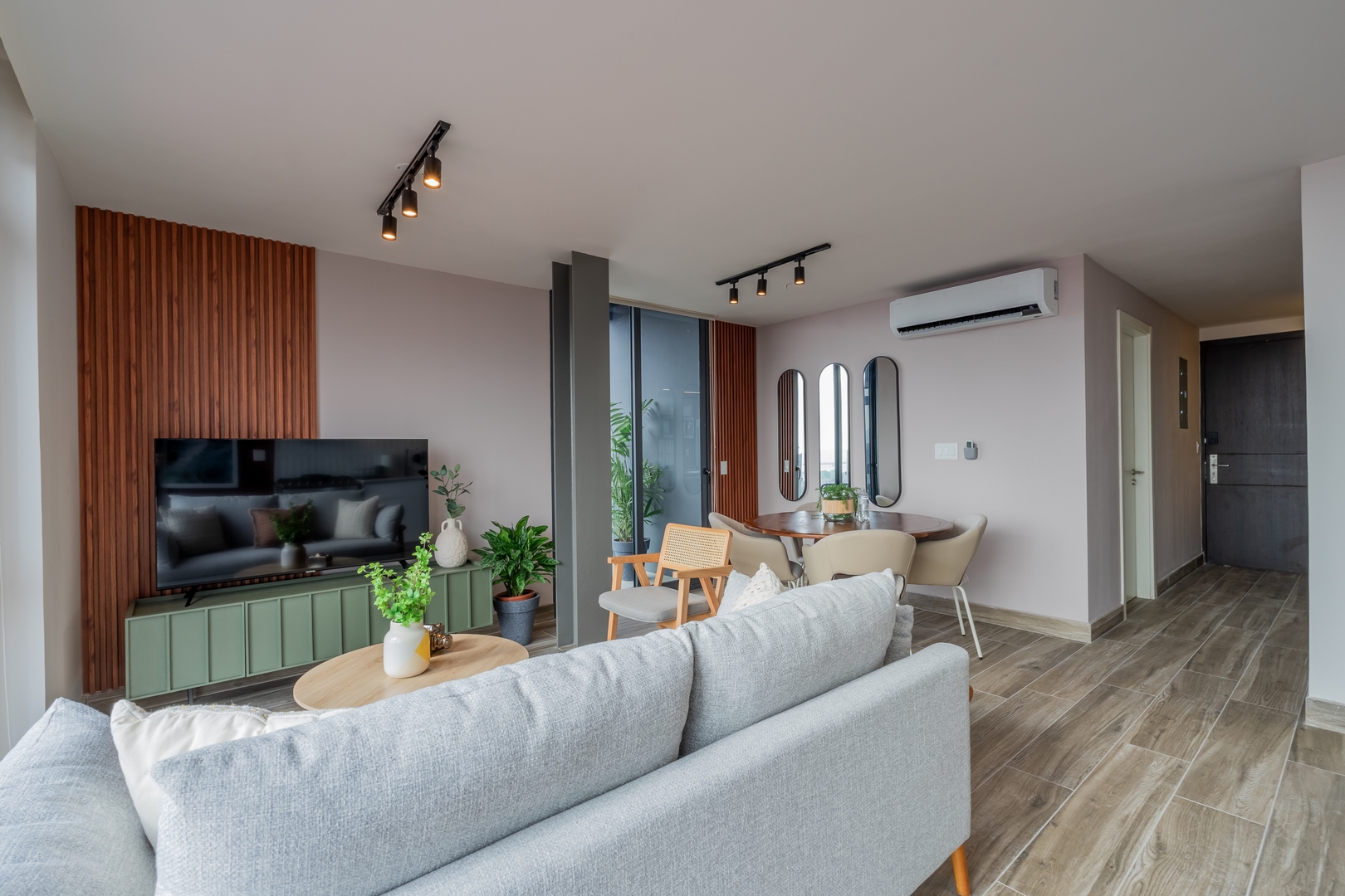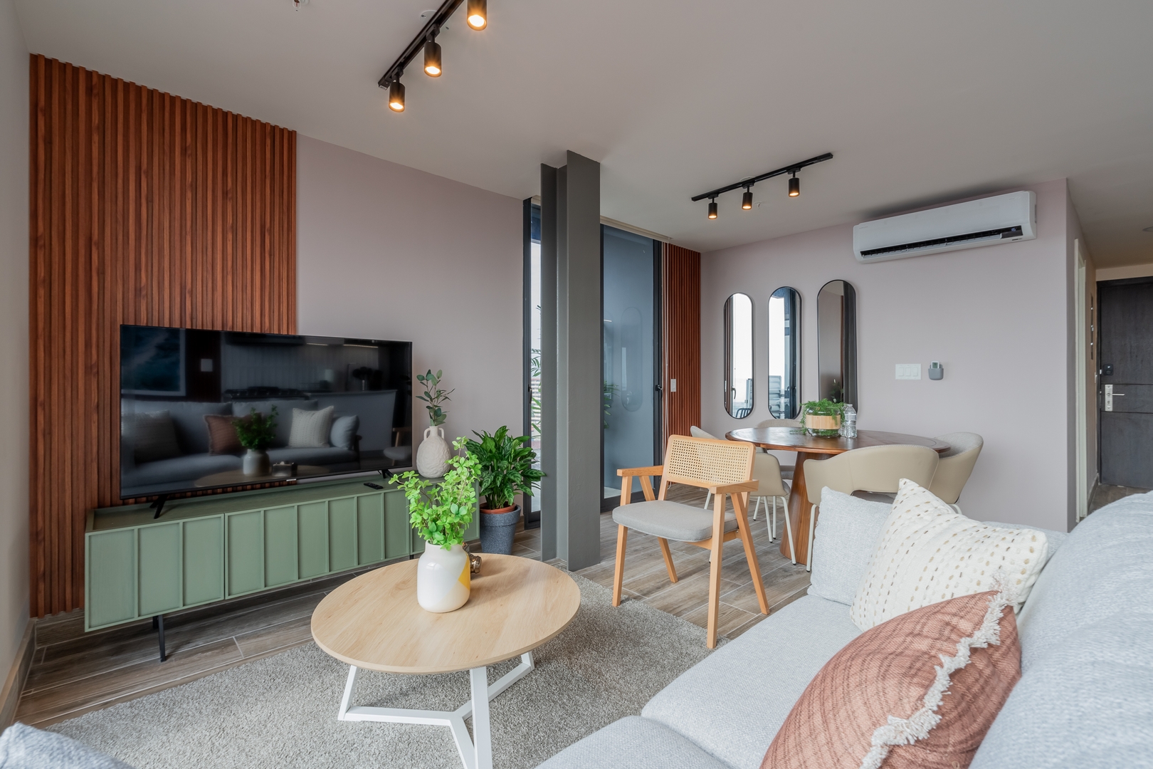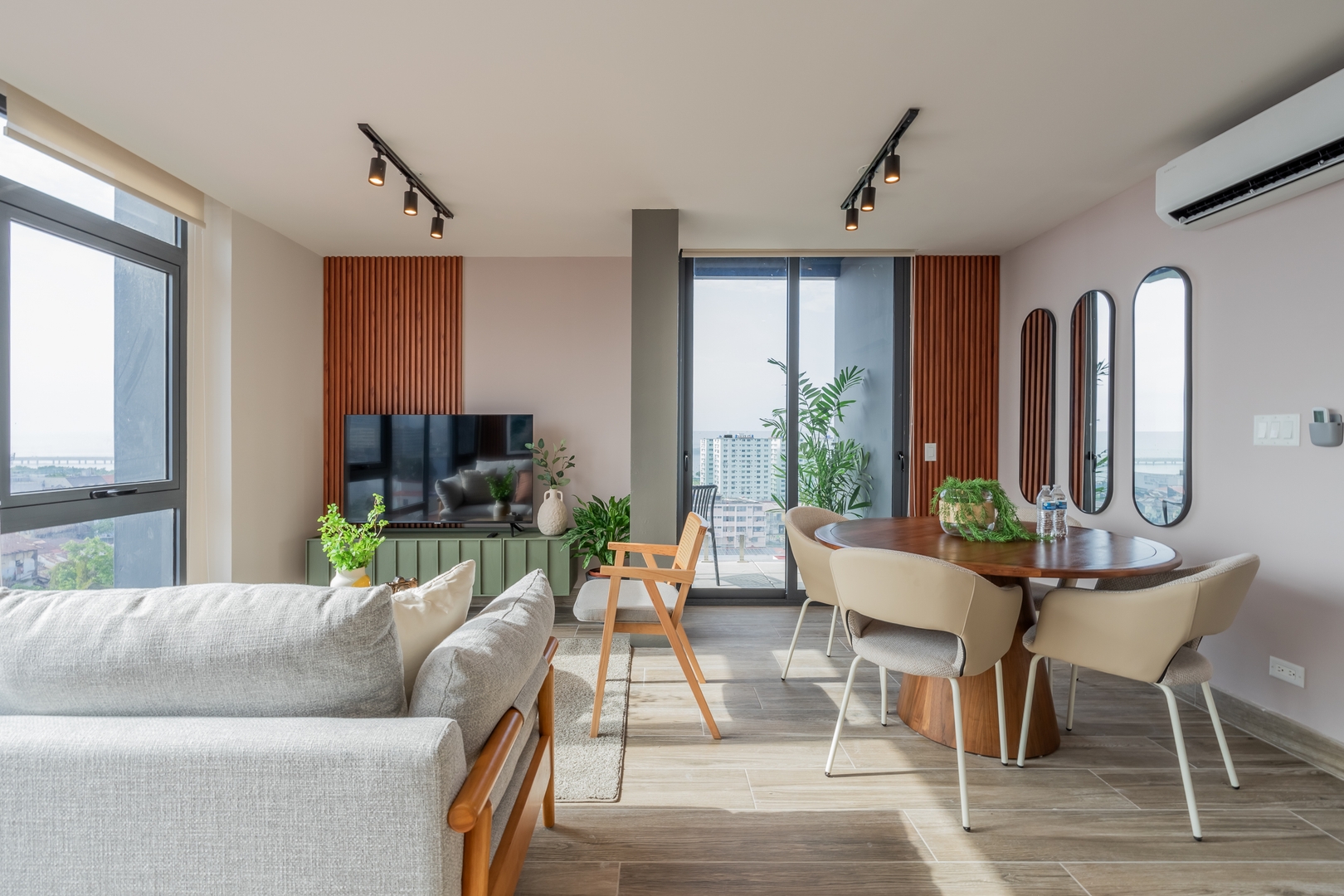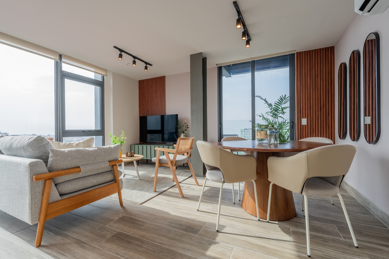 Our meticulously designed 60 m² (645 ft²) apartment invites you to unwind in elegance. With expansive floor-to-ceiling windows and private balconies, you’ll be captivated by panoramic views of the historic old city, the breathtaking Pacific Ocean, and the vibrant modern skyline. Inside, discover top-tier finishes, including bespoke live-edge wood tables, luxurious hospitality Euro-top mattresses, and striking local photography that embodies the spirit of Panama.