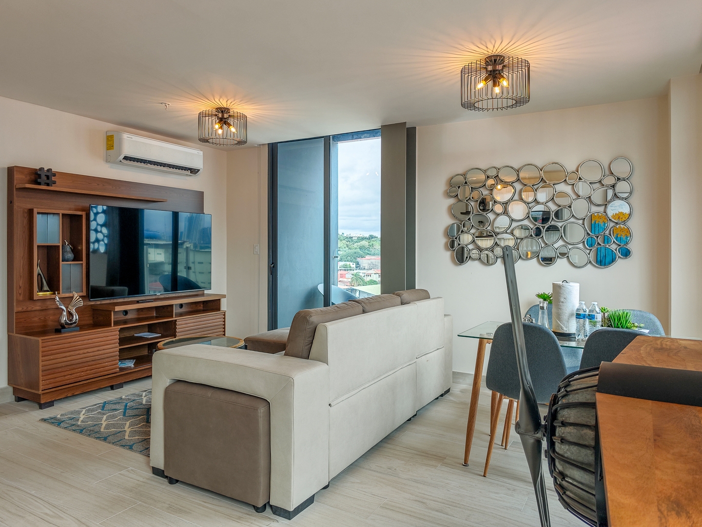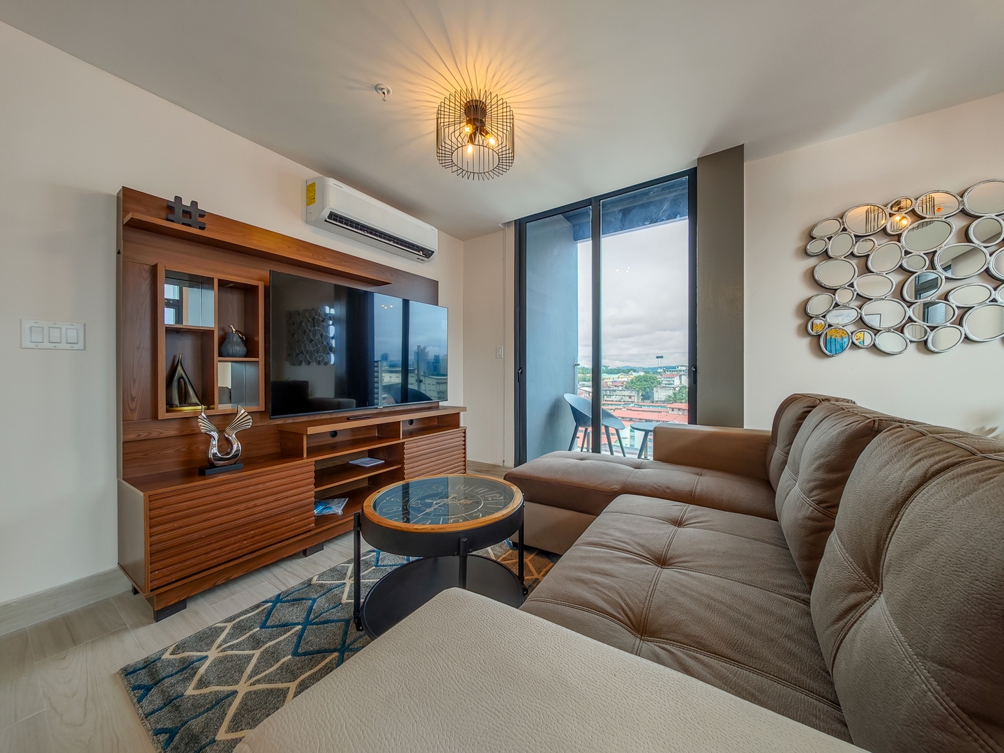 Our meticulously designed 61 m² (656 ft²) apartment invites you to unwind in elegance. With expansive floor-to-ceiling windows and private balconies, you’ll be captivated by panoramic views of the historic old city, the breathtaking Pacific Ocean, and the vibrant modern skyline. Inside, discover top-tier finishes, including bespoke live-edge wood tables, luxurious hospitality Euro-top mattresses, and striking local photography that embodies the spirit of Panama.