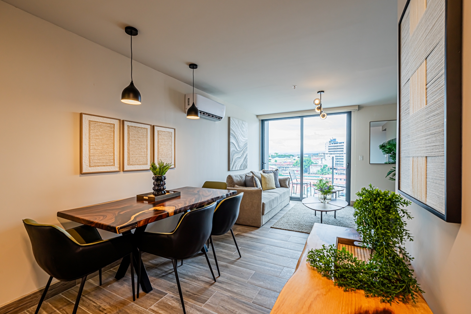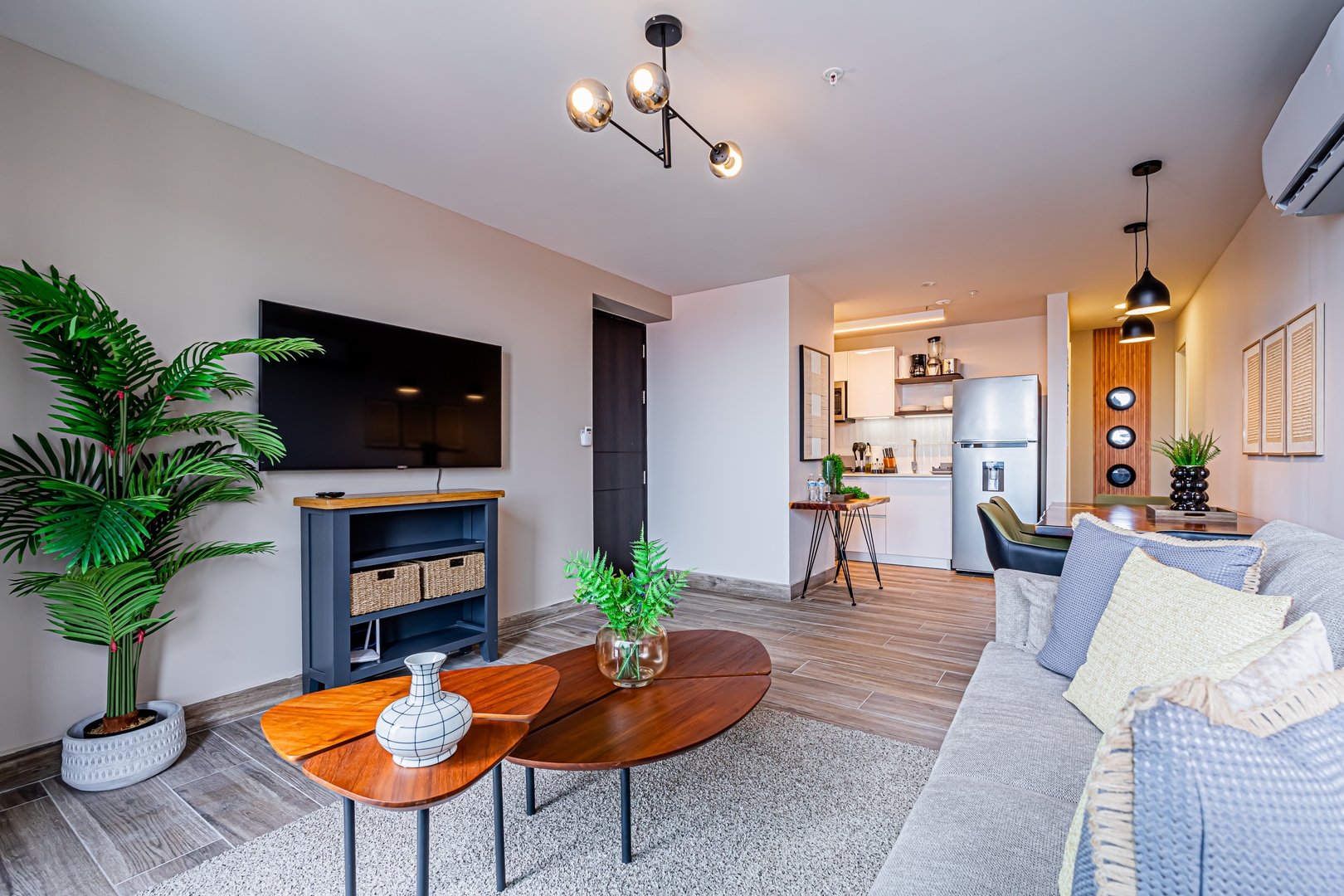 Our meticulously designed 50 m² (538 ft²) apartment invites you to unwind in elegance. With expansive floor-to-ceiling windows and private balconies, you’ll be captivated by panoramic views of the historic old city, the breathtaking Pacific Ocean, and the vibrant modern skyline. Inside, discover top-tier finishes, including bespoke live-edge wood tables, luxurious hospitality Euro-top mattresses, and striking local photography that embodies the spirit of Panama.