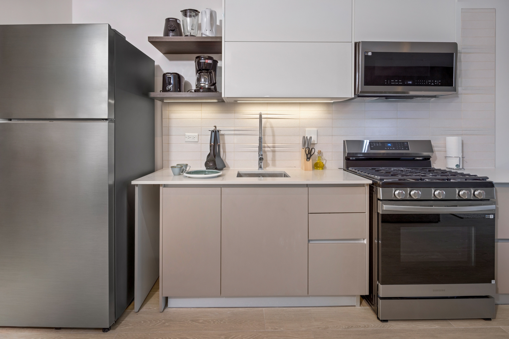 • Open-concept kitchen with modern appliances